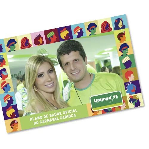 Opção de entrega de fotos impressas durante o evento, transformando registros em brindes e lembranças diferenciadas, com molduras de acordo com a identidade visual da empresa.
